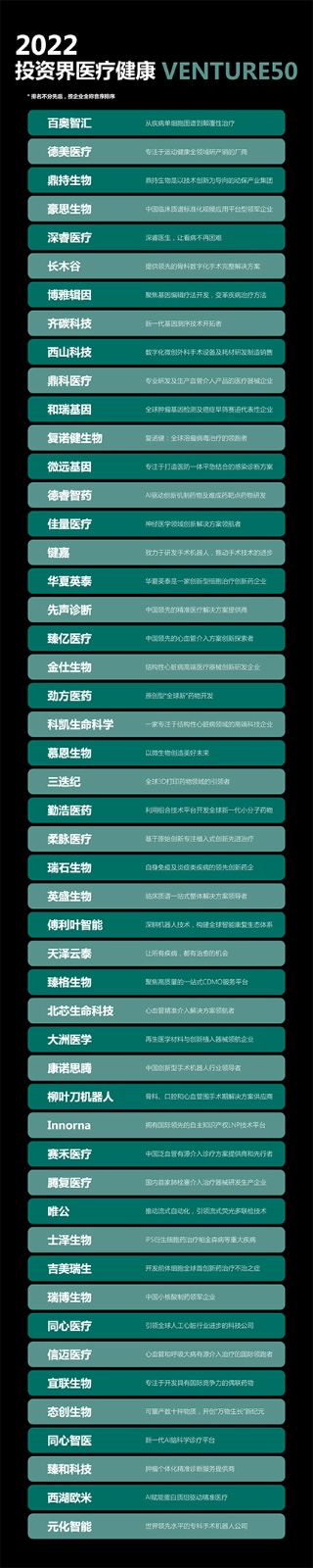至此,讓我們一同恭喜并關(guān)注2022年度Venture50的上榜企業(yè):