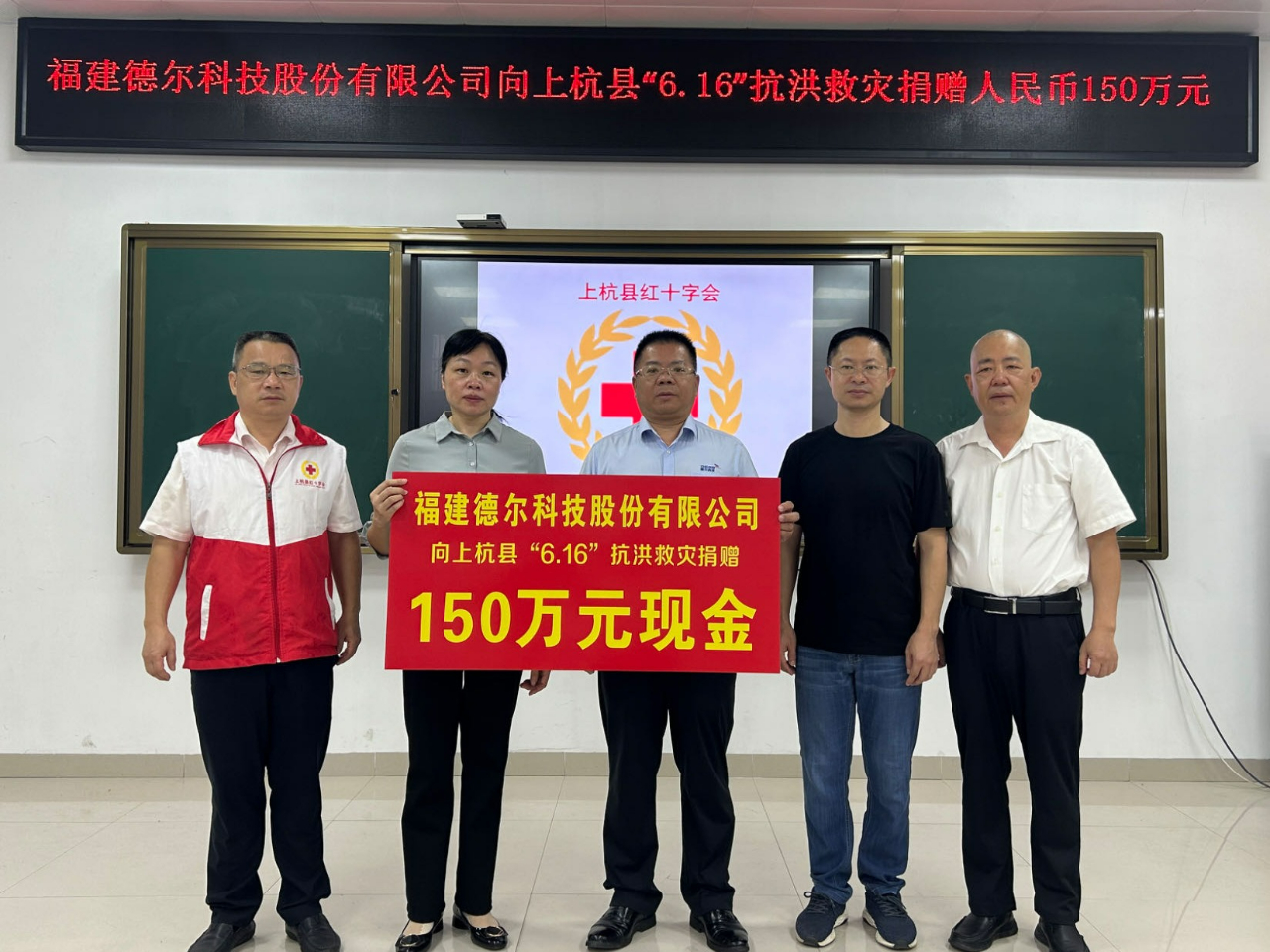福建德爾從創(chuàng)立之初一直秉承著熱心公益、回饋社會(huì)的理念。通過縣紅十字會(huì)為家鄉(xiāng)防汛救災(zāi)捐款,并在6月22日公司救援物資齊備后,奔赴上杭縣茶地鄉(xiāng)洪災(zāi)一線開展救助。德爾人始終不忘一顆初心,心系家鄉(xiāng),時(shí)刻關(guān)注著家鄉(xiāng)的災(zāi)情變化。面對這場災(zāi)難,我們有責(zé)任伸出援手,幫助受災(zāi)的父老鄉(xiāng)親渡過難關(guān),早日重建家園,希望大家越來越好!